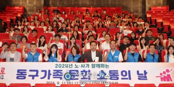 박종옥 동구 공무원노조위원장은 “오늘 행사를 통해 건전한 노사관계를 구축하는 데 도움이 될 것으로 기대한다”며 “또한 현안업무 추진에 지친 직원들이 영화를 관람하며 잠시나마 힐링하는 시간이 되길 바란다”고 전했다.