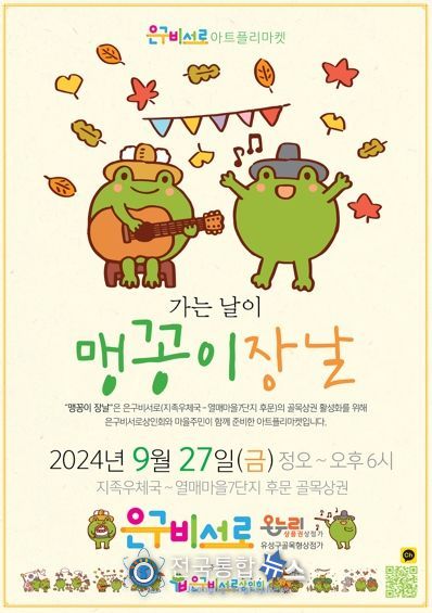 전국통합뉴스 이종구 기자 | 대전 유성구는 오는 27일 은구비서로 맹꽁이 거리 일원(지족우체국~열매마을7단지 후문 골목상권, 쌈지공원 일부)에서 제3회 맹꽁이장날을 개최한다고 밝혔다.