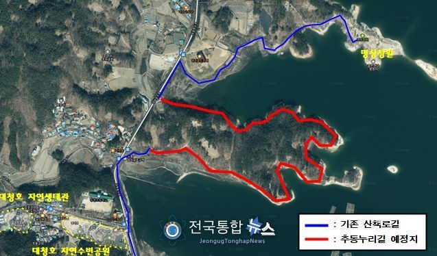 특히, 대청조정지 댐 건설 이후 대청호 수위 상승으로 통행이 불가한 대청호 오백리길 4구간(호반낭만길) 중 일부 구간에 수변데크를 설치하고 산책로를 정비해 탐방객의 보행 안전을 확보할 수 있다.