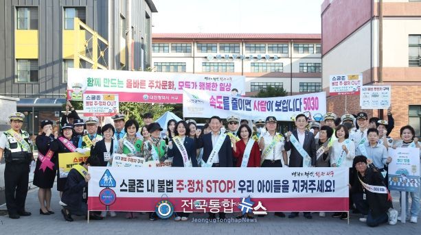 이날 참여자들은 ‘일단멈춤’, 아이먼저 보내주세요! 라는 주제로, 개학기를 맞이하여 등교하는 아이들이 안전하게 건널 수 있도록 보행 지도를 하고 ▲횡단보도 앞 일시 정지 ▲스쿨존 불법주정차 금지 등의 내용을 홍보하며 운전자들의 배려 운전을 유도했다.