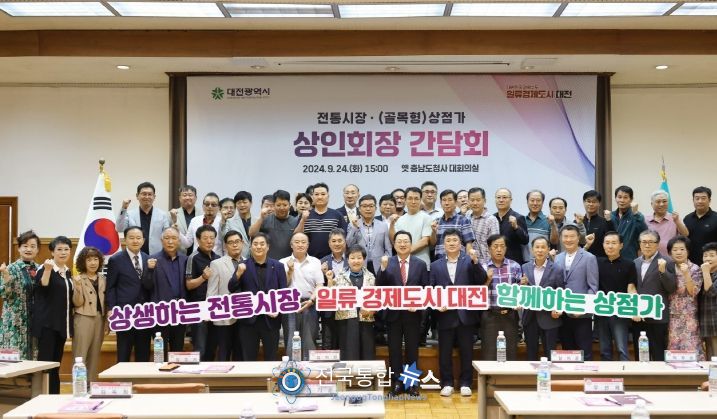 전국통합뉴스 이종구 기자 | 대전시는 24일 이장우 대전시장 주재로 전통시장‧상점가 상인회장 60여 명과 간담회를 개최했다.
