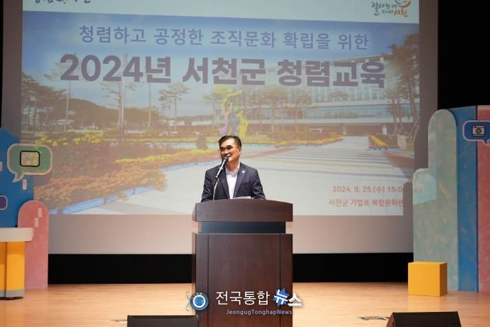 전국통합뉴스 임명락 기자 | 서천군은 지난 25일 기벌포 복합문화센터에서 김기웅 군수를 비롯하여 군 소속 공무원 260여명, 국립생태원 임직원 20여 명 등이 참석한 가운데 청렴하고 공정한 조직문화 확립을 위한‘공직자 청렴교육’을 실시했다.