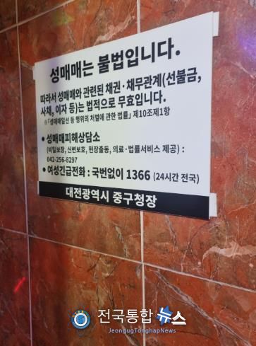 전국통합뉴스 이종구 기자 | 대전 중구는 2024년 성매매 추방주간(2024. 9. 19.부터 9. 25.)을 맞이해 지난 24일, 25일 양일간 관내 유흥주점 57개소를 대상으로 중구청, 중부경찰서, 여성인권지원상담소 느티나무와 합동점검반을 구성해 유흥주점을 집중점검 했다고 밝혔다.