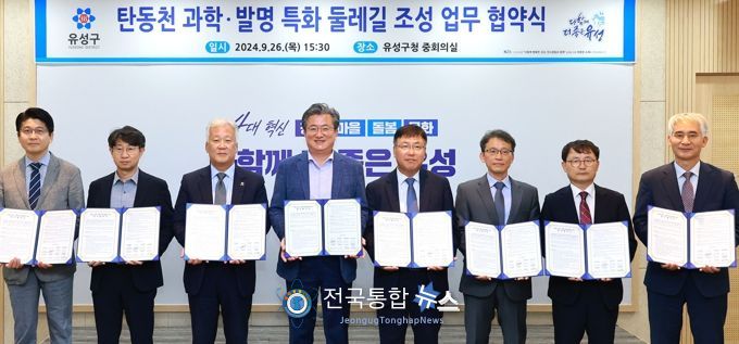 전국통합뉴스 이종구 기자 | 대전 유성구는 26일 구청 중회의실에서 7개 기관과 ‘탄동천 과학ˑ발명 특화 둘레길 조성’을 위한 업무협약을 체결했다고 밝혔다.