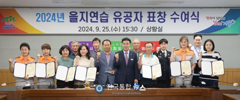 전국통합뉴스 임명락 기자 | 계룡시는 지난 25일 시청 상황실에서 ‘2024년 을지연습’을 성공적으로 마무리하고 비상 대비 태세 확립에 기여한 유공자에게 표창을 수여했다고 전했다.