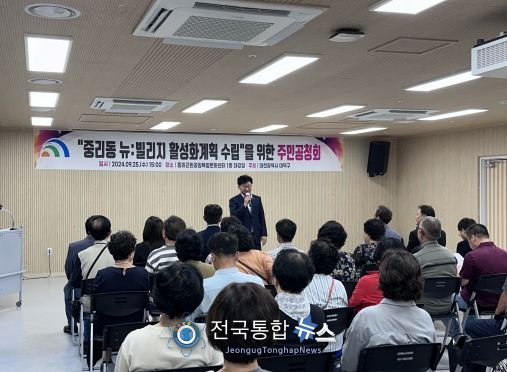 전국통합뉴스 이종구 기자 | 대전 대덕구는 중리근린공원 복합문화센터에서 ‘중리동 뉴:빌리지 도시재생 활성화계획 수립’을 위한 주민공청회를 개최했다고 밝혔다.