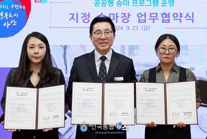 전국통합뉴스 임명락 기자 | 아산시가 민선8기 공약사항인 공공형 승마 프로그램 운영을 위해 지난 27일 지정 승마장과 협약을 체결했다.