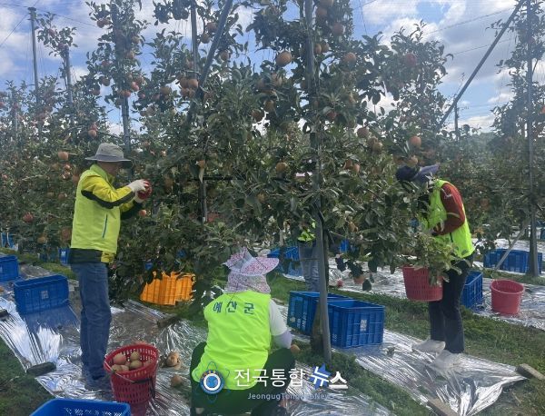 전국통합뉴스 임명락 기자 | 예산군은 기후변화로 인해 사과 수확에 어려움을 겪는 농가의 일손부담을 덜어주기 위해 농촌 일손돕기를 적극 추진한다고 밝혔다.