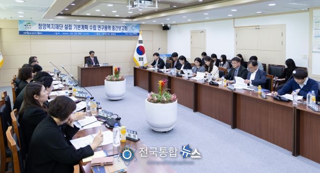 전국통합뉴스 임명락 기자 | 청양군은 지난 31일 2층 상황실에서 김돈곤 군수 주재로 군의원, 지역사회보장대표협의체 위원, 정책자문위원, 시설장 등 21여 명이 참석한 가운데 청양복지재단 설립 기본계획 수립 용역 중간보고회를 개최했다.
