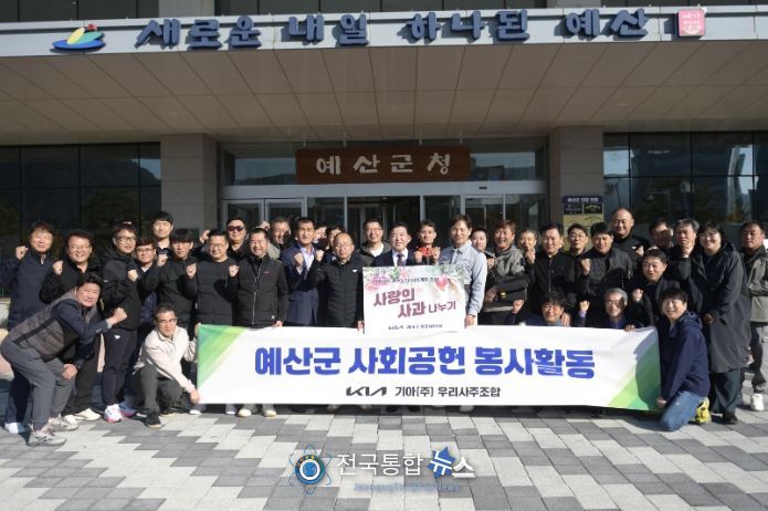 전국통합뉴스 임명락 기자 | 기아㈜(구 기아자동차) 우리사주조합이 7일 예산군을 찾아 예산사과 3㎏ 335박스(1000만원 상당)를 기탁했다.