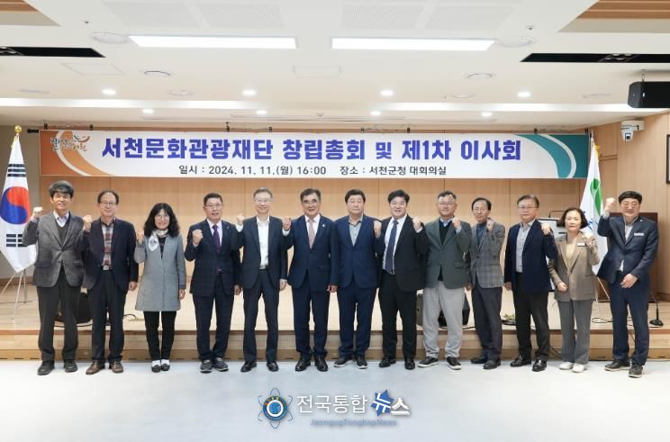 전국통합뉴스 임명락 기자 | 서천군은 지난 11일 재단 이사장인 김기웅 군수, 문옥배 대표이사를 비롯한 이사·감사 11명이 참석한 가운데 서천문화관광재단 창립총회를 개최했다.