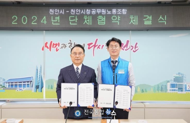 전국통합뉴스 임명락 기자 | 천안시청공무원노동조합은 지난 13일 시청 중회의실에서 천안시와 함께 2024년 단체협약 조인식을 가졌다.