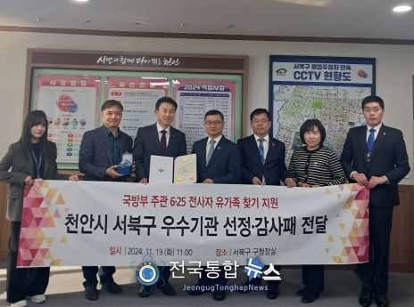 전국통합뉴스 임명락 기자 | 천안시 서북구는 19일 국방부가 추진하는 ‘6·25전사자 유가족 찾기 지원 우수기관’으로 선정됐다고 밝혔다.