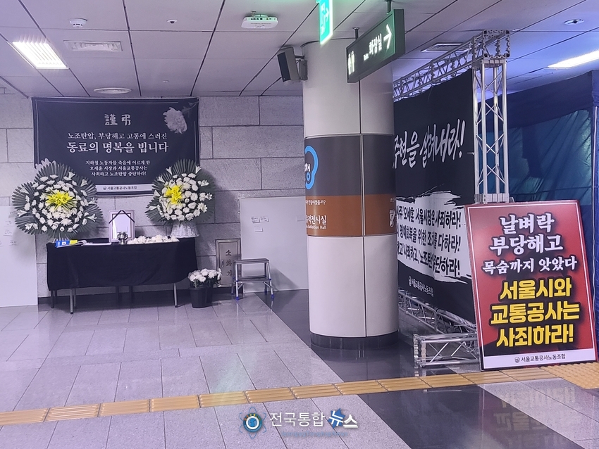 제보자의 말대로 시청역사안에 버젖이 분향소가 설치되어 있었다.