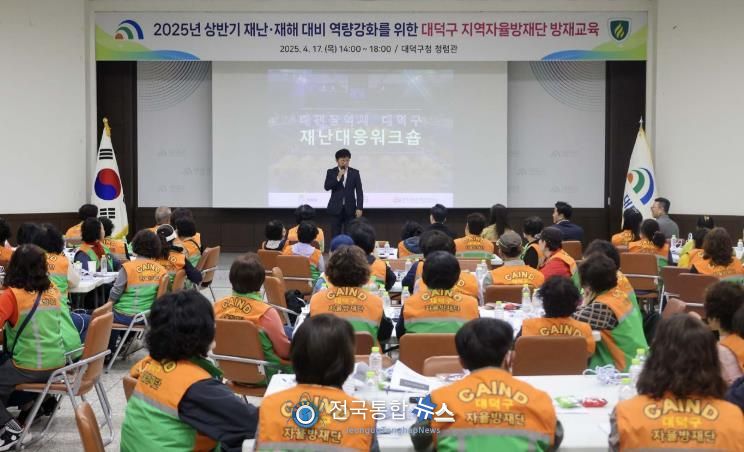 전국통합뉴스 이종구 기자 | 대전 대덕구는 대덕구 지역자율방재단원과 재난방재담당 공무원 160여 명을 대상으로 ‘2025년 상반기 재난·재해 대비 역량 강화 교육’을 실시했다고 17일 밝혔다.