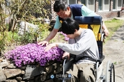 조영종 회장 "거주인들의 봄꽃같이 화사한 웃음에 보람" 이영아 직원 "친구나 가족처럼 대해주신 봉사자들께 감사" 전국통합뉴스 이인복 기자 | 국제로타리 3620지구 천안선행 로타리클럽(회장 조영종) 회원들은 4월의 셋째 토요일인 18일 오전 천안 동남구 북면 소재 구산원에서 거주인들을 대상으로 산책과 사진 찍어주기 봉사활동을 실시하였다. 천안선행 로타리클럽 회원들은 오전 10시부터 휠체어 이용인 4명을 포함하여 30명 가까운 구산원 거주인들을 입구의 산책로로 인도하여 ‘봄길 산책’을 실시하였는데, 산책 도중 봄꽃들을 배경으로 ‘꽃과 함께 사진’을 찍어주었다. 거주인들은 산책길에 피어있는 꽃을 보면 앞을 다투어 자세를 취하고 사진을 찍어 달라고 요청하는가 하면, 음악에 맞추어 율동을 하거나 노래를 따라부르기도 하고, 동료들의 노래와 율동에 손뼉을 치고 환호성을 지르며 즐거워하였다. 이날 사진은 천안선행 로타리클럽 총무이자 아마추어 사진작가인 손은영 씨가 담당하였는데, 사진은 인화 되는 대로 파일과 함께 구산원 측에 전달될 예정이다. 조영종 회장은 “바깥출입이 쉽지 않은 거주인들께서 화창한 봄날을 맞이하여 봄길 산책을 하실 수 있어서 참 좋았다.”라며, “봉사자