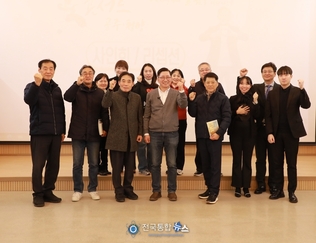 전국통합뉴스 이승주 기자 | 한국디자인미술교육진흥회(회장 김경희, 이하 한미진)는 지난 1월 17일 경기도 사회혁신공간 교육실에서 2026년의 활기찬 시작을 알리는 신년회 및 전시기획특강을 성공적으로 마쳤다. 이번 행사는 한국디자인미술교육진흥회가 주최하고 문화예술기업 (주)지오그라피가 주관해 예술적 영감과 따뜻한 네트워킹이 어우러진 뜻깊은 시간을 가졌다. 전시기획 특강으로 서울디지털대학교 허영훈 교수의 강연으로 예술적 전문성을 더하며 행사의 포문을 열었다. 이어 운영 보고, 화합의 시간 순서로 진행됐다. 운영 보고에서 지난 한 해를 돌아보는 결산보고와 함께 2026년 새해 전시계획을 공유하며 비전을 나누었다. 화합의 시간에서는 신규 운영진 소개와 더불어 참석한 예술인들이 함께 즐기는 경품추첨 행사를 통해 유쾌하고 따뜻한 분위기를 이어갔다. 한미진은 해를 거듭할수록 폭발적인 성장을 보여주는 한미진 회원들의 열정이 올해도 큰 기대를 모으고 있다. 향후 계획으로 이번 신년 인사회를 통해 결속력을 다진 한미진 회원들의 수준 높은 작품들은 다가오는 2026년 5월 <ARTUSIN-서울> 전시를 통해 대중에게 공개될 예정이다.