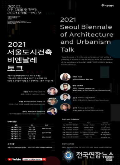 전국연합뉴스 김미리 기자 | 도시문제에 대한 다양한 해법을 고민하고 세계 여러 도시와 건축 분야 문화를 교류하는 「2021 서울도시건축비엔날레」가 시민들과 소통하기 위한 온라인 토크를 개최한다.