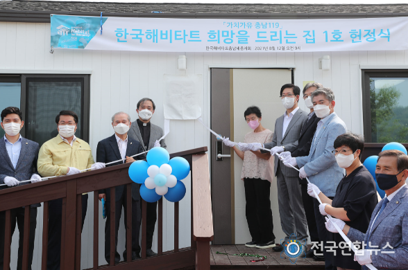 전국연합뉴스 김미리 기자 | 12일 한국해비타트 충남세종지회와 충청남도가 협업한 제1호‘가치가유 충남119 희망을 드리는 집’헌정식이 열렸다.