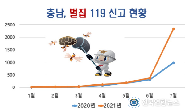 13일 도 소방본부의 통계에 따르면 올해 7월말 기준 벌집 관련 신고는 3087건으로 작년 같은 기간 1595건에 비해 두 배 가까이 증가했다.