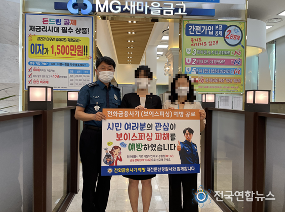 전국연합뉴스 김미리 기자 | 대전둔산경찰서는 8월 13일 10:00 보이스피싱 피해를 예방한 한밭새마을금고 ○○지점 A 주임에게 신고보상금과 감사장을 수여했다.