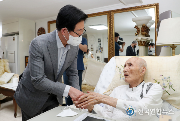 전국연합뉴스 김미리 기자 | 양승조 충남도지사는 13일 금산 출신 애국지사로 대전에 거주 중인 애국지사 이일남(97) 옹을 찾아 나라를 위해 헌신한 점에 대한 감사와 존경의 뜻을 전했다.
