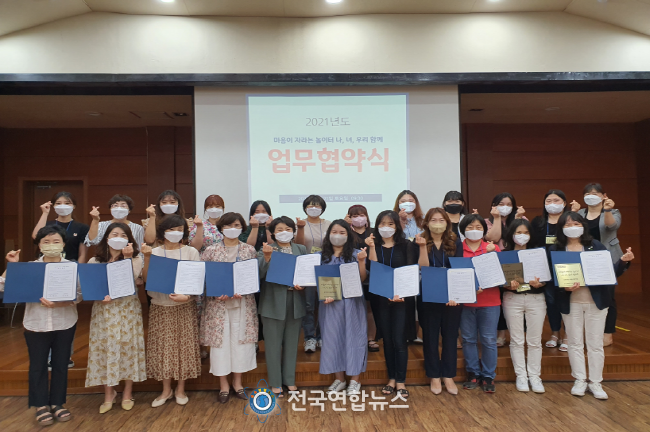전국연합뉴스 김미리 기자 | 충청남도어린이인성학습원과 참여기관 공모에서 선정된 충남도내 10개 어린이집(아산 그린키즈, 천안 근로복지공단천안, 천안 다솜, 아산 배방, 서산 성화, 서산 색동, 서산 시립양우, 당진 송악, 논산 작은별, 아산조은)은 8월 21일 충청남도어린이인성학습원 강당에서 업무협약식을 열고, 충남도내 유아인성교육 확산을 위해 상호협력하기로 약속하였다.