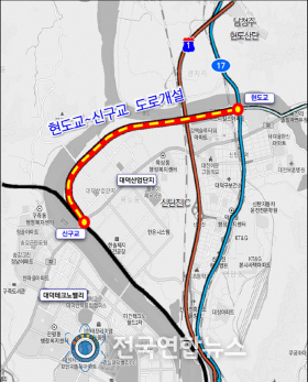 전국연합뉴스 김미리 기자 | 대전시는 대덕구 신탄진동에서 문평동 구간을 우회하는 현도교~신구교 도로개설 사업이 24일 기획재정부 예비타당성조사를 최종 통과했다고 밝혔다.