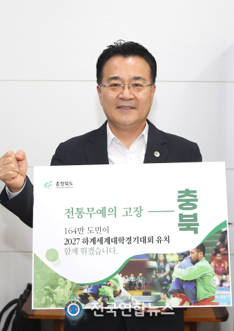 전국연합뉴스 김미리 기자 | 서승우 충북도 행정부지사가 25일, 2027하계세계대학경기대회 충청권(충북,대전,세종,충남) 유치 응원 챌린지에 참여했다.