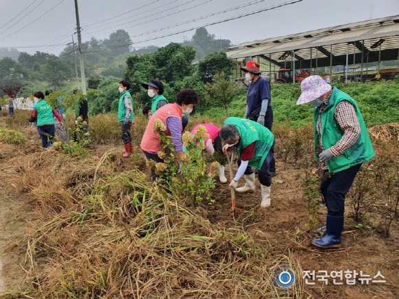 새마을지도자와 마을 주민 40여명이 참여한 가운데, “수국 400여주 식재, 연산홍 꽃길 정비, 마을안내판 설치, 하봉 저수지 청결활동” 등을 추진하며 현장 중심의 마을공동체운동을 전개했다.