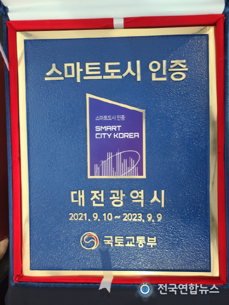 전국연합뉴스 박덕선 기자 | 대전시는 국토부가 주관하는 스마트도시 인증 공모사업에서 우수한 평가를 받아 2회 연속 스마트도시 인증기관으로 선정되어 제5회 월드스마트시티엑스포에서 인증서와 동판을 받았다고 밝혔다.