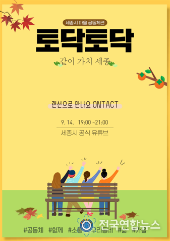 전국연합뉴스 박덕선 기자 | 세종특별자치시가 오는 14일 ‘보이는 라디오, 유튜브 공감 라이브 토닥토닥 들어드림’ 9월 행사로, 익숙하면서도 낯선 세종시 마을 공동체 활동을 공유하고 소통하는 자리를 마련했다.