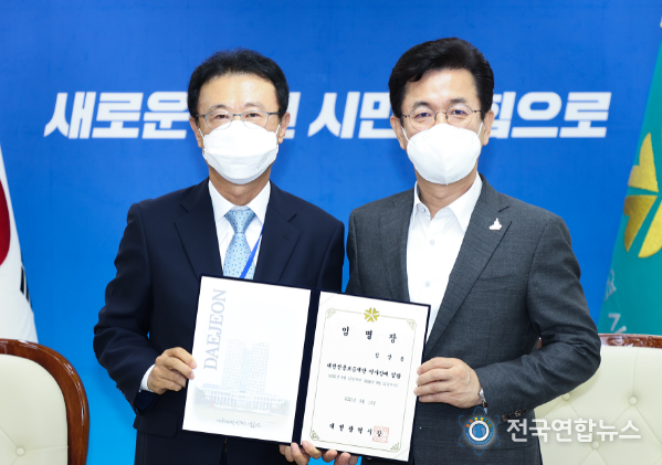 전국연합뉴스 박덕선 기자 | 허태정 대전시장은 13일 오전 정상봉 제9대 대전신용보증재단 이사장에게 임명장을 수여했다. 신임 이사장은 충남대학교 농화학과를 졸업하고, 1986년 충청은행에 입사하여 34년간 금융인으로 근무하였으며, 앞으로 3년 동안 대전지역 소기업·소상공인의 보증 및 자금지원, 경제활성화 등의 업무를 본격적으로 수행하게 된다.