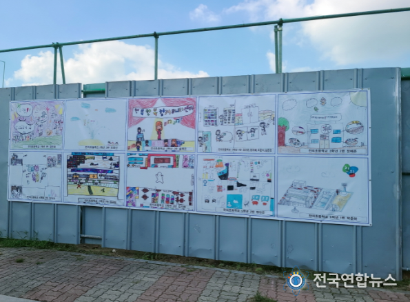 전국연합뉴스 박덕선 기자 | 세종특별자치시가 전의·전동면 복합커뮤니티센터 건립에 착수한 가운데 전의·전동면 초등학생들의 그림 작품이 건립 현장의 임시울타리를 장식했다.