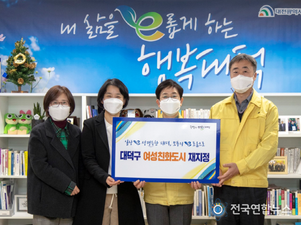 한편 대덕구는 2015년 여성친화도시 1단계 지정 이후 성인지 향상교육, 여성안심거울길 조성, 여성안심지킴이집 운영, 불법촬영 범죄 근절을 위한 점검, 일생활균형 지역특성화 사업 등 1단계 사업을 체계적으로 추진해 지난 12월 여성친화도시 2단계 지정을 받고, 대덕구육아종합지원센터 운영, 육아복합마더센터 신설, 다함께돌봄센터 확충 등 양성평등을 위한 정책을 지속적으로 펼쳐오고 있다.