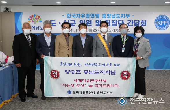전국연합뉴스 박덕선 기자 | 양승조 충남도지사가 세계자유민주연맹(WLFD, World League for Freedom and Democracy)으로부터 ‘국제자유장’을 수상했다.