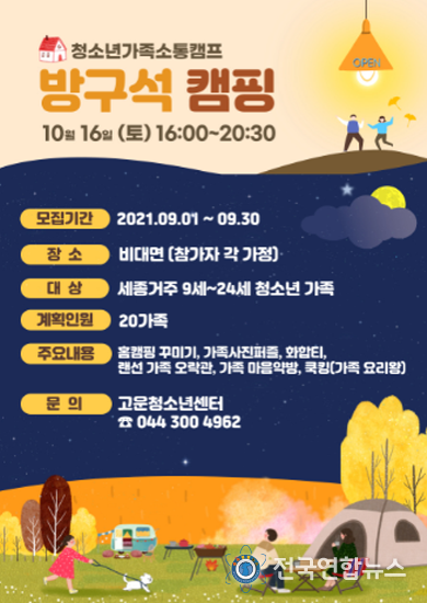 전국연합뉴스 박덕선 기자 | 세종특별자치시 고운청소년센터가 사춘기 청소년과 부모를 대상으로 가족 내 소통과 화합을 위해 가족소통프로그램 ‘방구석 캠프’를 진행한다.