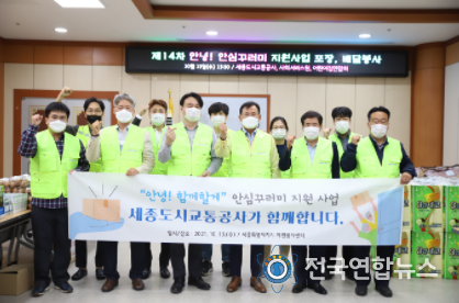전국연합뉴스 박덕선 기자 | 세종도시교통공사는 지난 13일 (사)세종특별자치시자원봉사센터(센터장 임명옥)에서 추진하고 있는 “안녕 함께할게” 안심꾸러미 14차 지원사업에 참여해 이웃들이 따뜻한 겨울을 날 수 있도록 봉사활동을 함께했다.