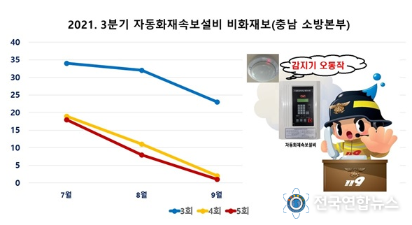 전국연합뉴스 박덕선 기자 | 충남소방본부가 추진 중인 자동화재속보설비(이하 속보설비) 비화재보 저감 특별대책이 실질적인 효과를 거두고 있는 것으로 나타났다.