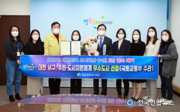 서구는 지난 21일 국토교통부가 주최하고 대한국토·도시계획학회가 주관한 2021년 대한민국 도시대상에서 지원체계 부문 특별상을 받아, 지난해 도시사회부문 국토교통부장관상 수상에 이어 2년 연속 도시대상 수상하였다.