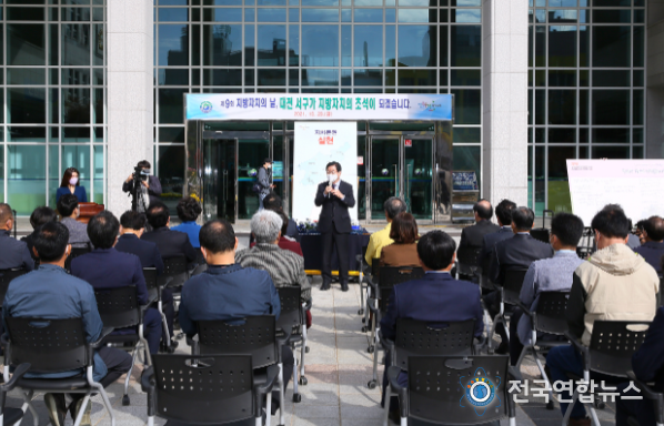 전국연합뉴스 박덕선 기자 | 대전 서구는 지난 29일 제9회 지방자치의 날을 맞아, 구청 광장에서 서구의원과 각 동 주민대표 및 올해 자랑스런 서구인상 수상자를 초청하여 ‘자치분권 실현 다짐행사’를 개최하였다.
