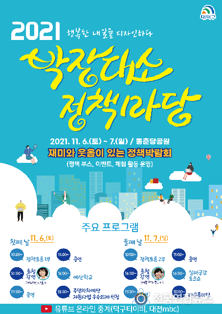 전국연합뉴스 박덕선 기자 | 대전광역시 대덕구는 오는 6일부터 7일까지 송촌동 동춘당 공원일대가 대규모 정책 소통의 장으로 바뀐다고 밝혔다.
