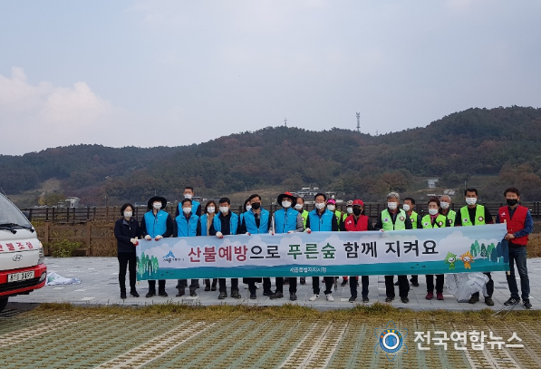전국연합뉴스 박덕선 기자 | 세종특별자치시 연서면이 오는 12월 15일까지 추진하는 가을철 산불방지 기간을 맞이해 4일 고복자연공원 일원에서 산불예방 캠페인을 전개했다.