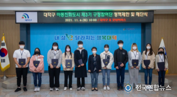 전국연합뉴스 박덕선 기자 | 대전 대덕구는 지난 6일 구청에서 ‘아동친화도시 제3기 구정참여단’의 활동을 마무리하는 정책제안 간담회와 함께 해단식을 가졌다.