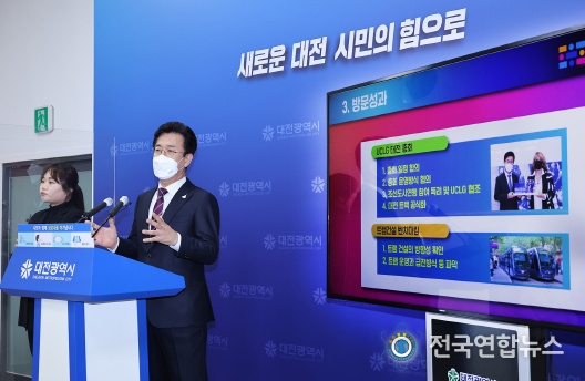 전국연합뉴스 박덕선 기자 | 허태정 대전시장은 8일 시청 기자회견장에서 최근 해외공무출장에 대한 결과브리핑을 열고 내년 세계지방정부총회(UCLG) 개최일 확정 등 주요 성과를 공개했다.