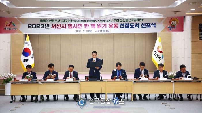 시는 8일 시청 대회의실에서 이완섭 서산시장을 비롯한 간부 공무원 50여 명과 송국범 도서관운영위원장 등 시민 11명이 참석한 가운데 ‘2023년 범시민 한 책 읽기 운동 선정도서 선포식’을 개최했다고 밝혔다.