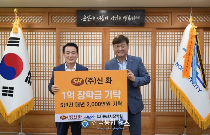 강경읍 소재 ㈜신화는 1999년 설립된 알루미늄 주물ㆍ주조기업으로 안전난간, 차량 방호용 울타리, 인도교 등을 설계하고 제작ㆍ설치하는 업체다. 도심의 안전과 쾌적한 거리환경을 책임지고자 힘쓰고 있다. 정찬욱 대표는 직접 논산시청을 방문해 2천만 원의 장학금을 기탁했으며, 아울러 향후 4년간 매년 2천만 원씩 장학금을 기탁하겠다는 뜻을 밝혔다. 정 대표는 “논산시 학생들이 지역발전에 이바지하는 자랑스러운 인재가 되는 길에 보탬이 되고 싶다”고 기탁 배경을 전했다.