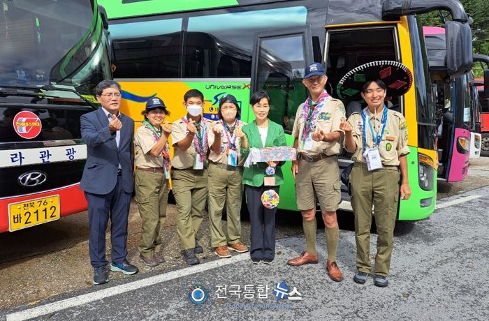 군은 잼버린 대회에서 고생한 대원들을 맞이하기 위해 지역사회가 한마음 한뜻으로 힘을 모았다.