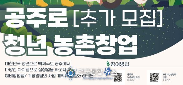 전국통합뉴스 임명락 기자 | 공주시는 농촌 신활력플러스사업의 일환으로 고령화된 농촌에 활력을 더할 청년 창업자에게 지원하기 위해 ‘공주로 청년 농촌창업’ 프로그램’을 운영한다고 12일 밝혔다.