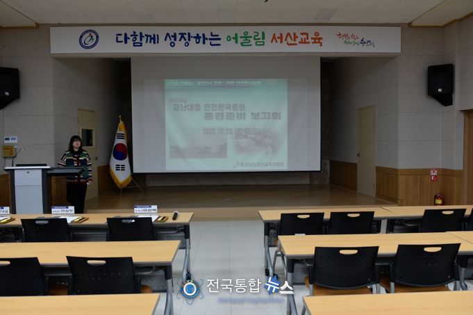 전국통합뉴스 임명락 기자 | 충청남도서산교육지원청은 23일 오전 ‘2023 재난대응 안전한국훈련 준비 보고회’를 개최했다. 2023년 재난대응 안전한국훈련은 2005년부터 범정부적 재난대응 역량을 확대, 강화하고자 시행하는 훈련으로 이번 훈련은 2023년 3회차 훈련으로서 훈련기간은 2023년 10월30일부터 11월 3일까지 5일간 시행될 예정이다.